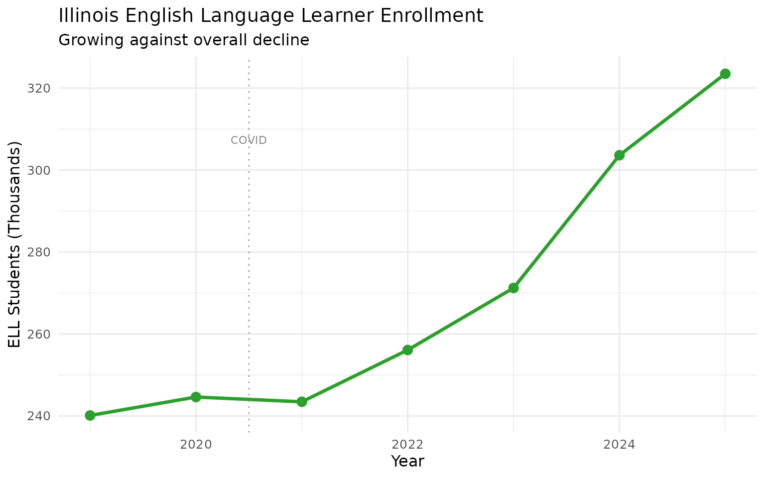 Hook: ELL growth amidst overall decline reflects changing migration patterns. Schools must adapt to serve an increasingly multilingual population.