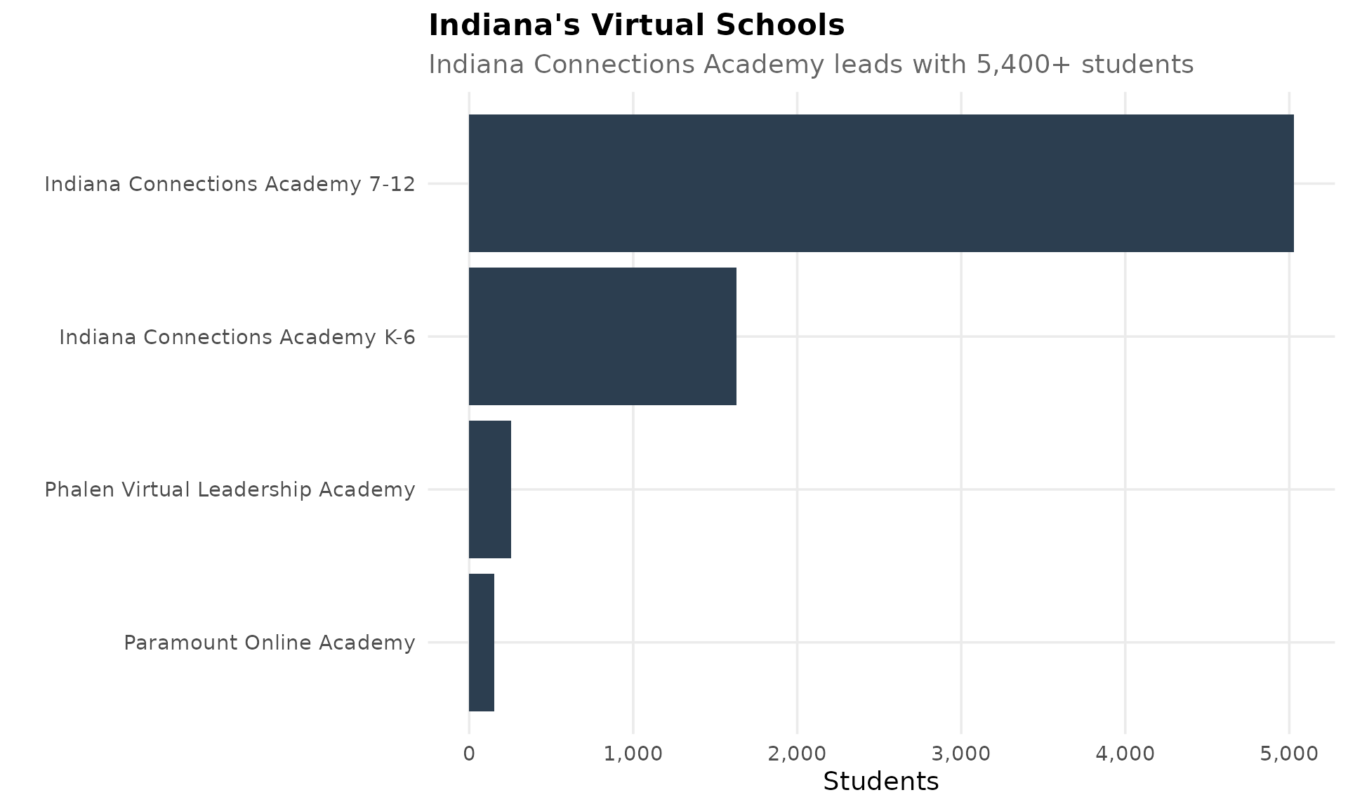 The 20 largest corporations educate nearly 300,000 of Indiana’s 1.03 million students. Fort Wayne, Indianapolis, and Evansville lead the pack.