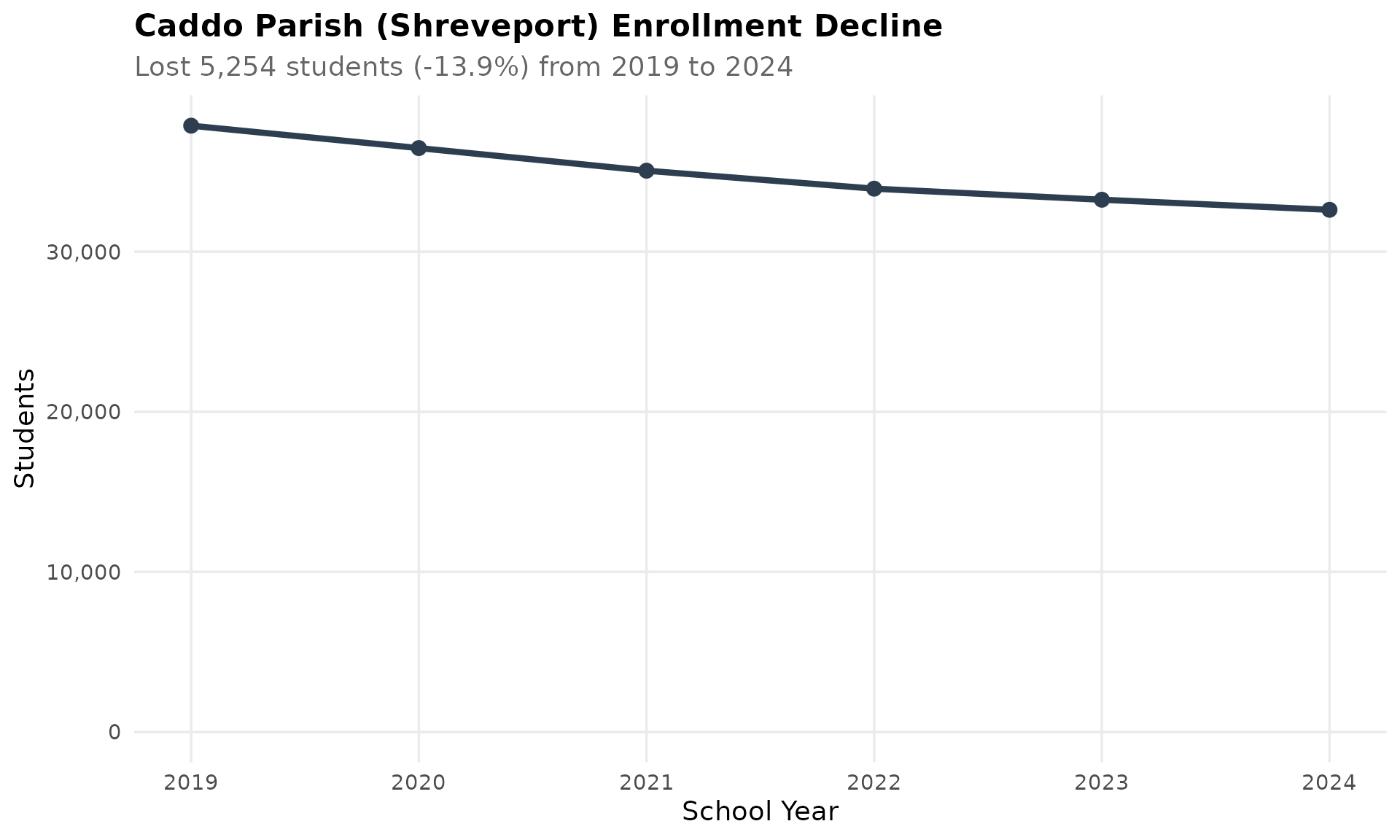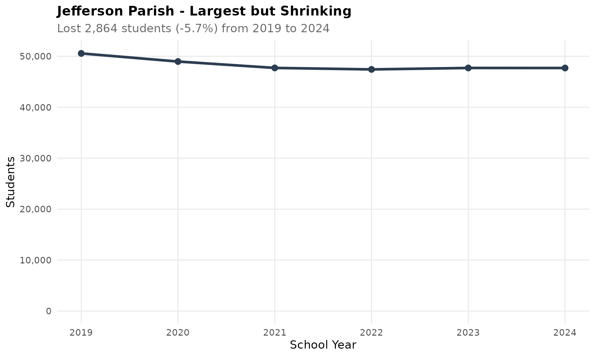 Louisiana’s largest district has been quietly losing students, dropping from 50,566 in 2019 to 47,702 in 2024.