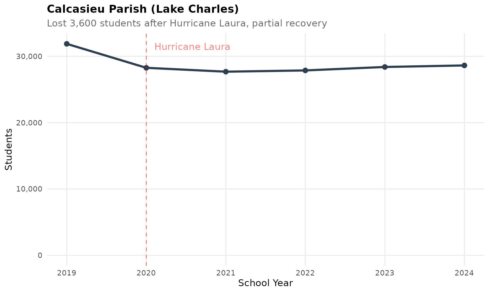 subtitle = "Lost 3,600 students after Hurricane Laura, partial recovery",