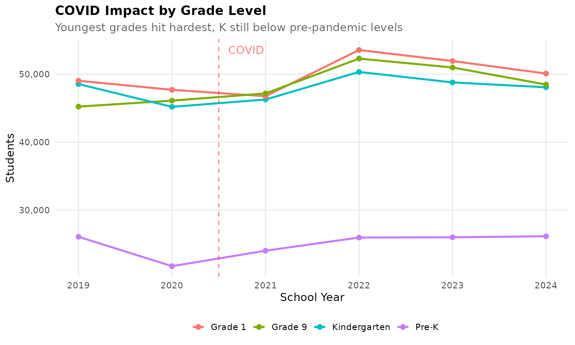 annotate("text", x = 2021.1, y = max(state_trend$n_students), label = "COVID",