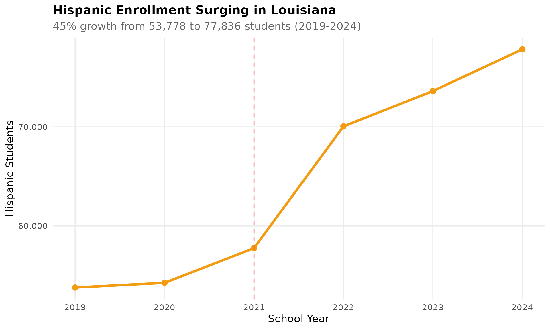 labs(title = "Hispanic Enrollment Surging in Louisiana",