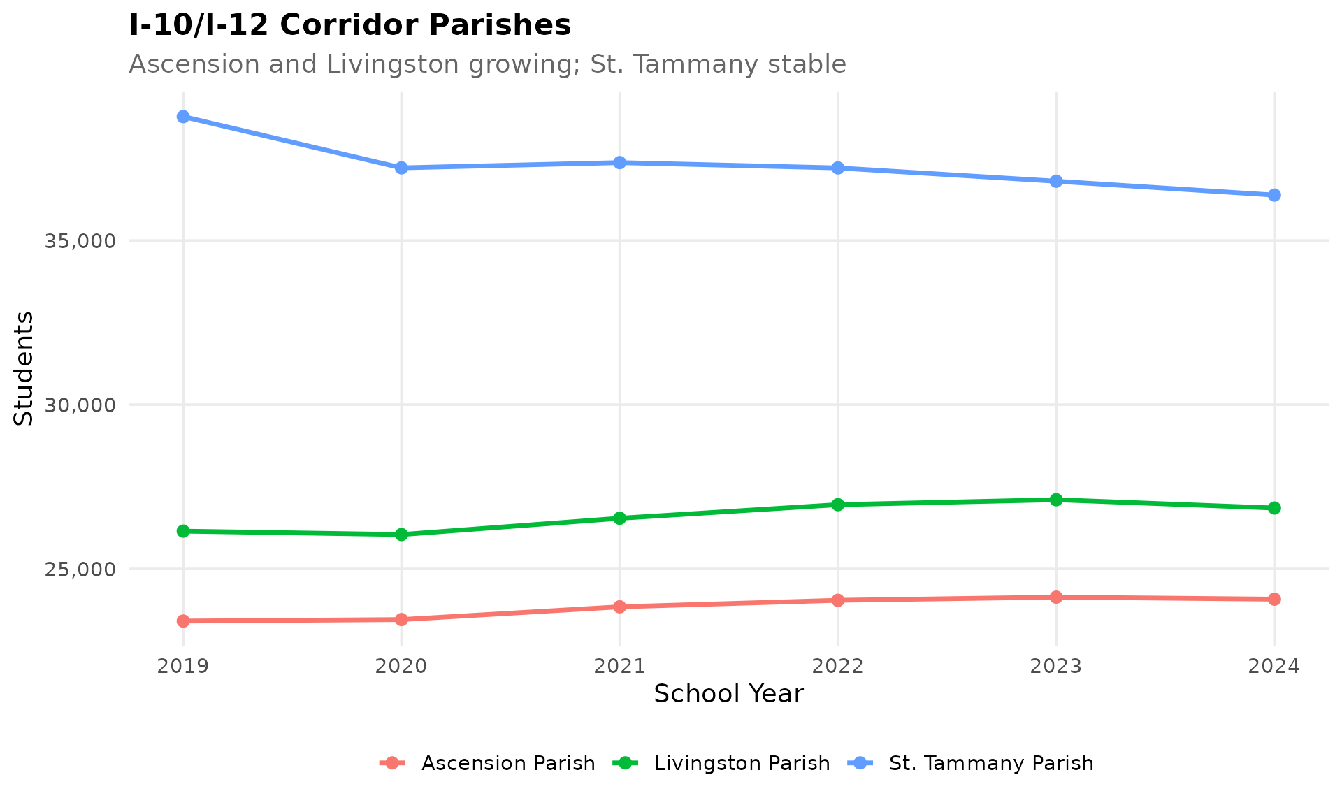 subtitle = "Ascension and Livingston growing; St. Tammany stable",