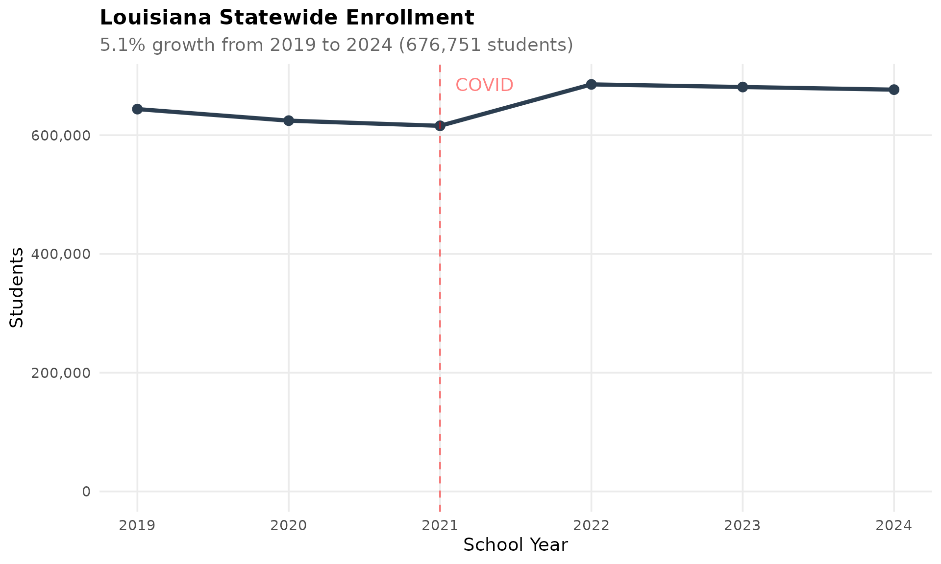 subtitle = "5.1% growth from 2019 to 2024 (676,751 students)",