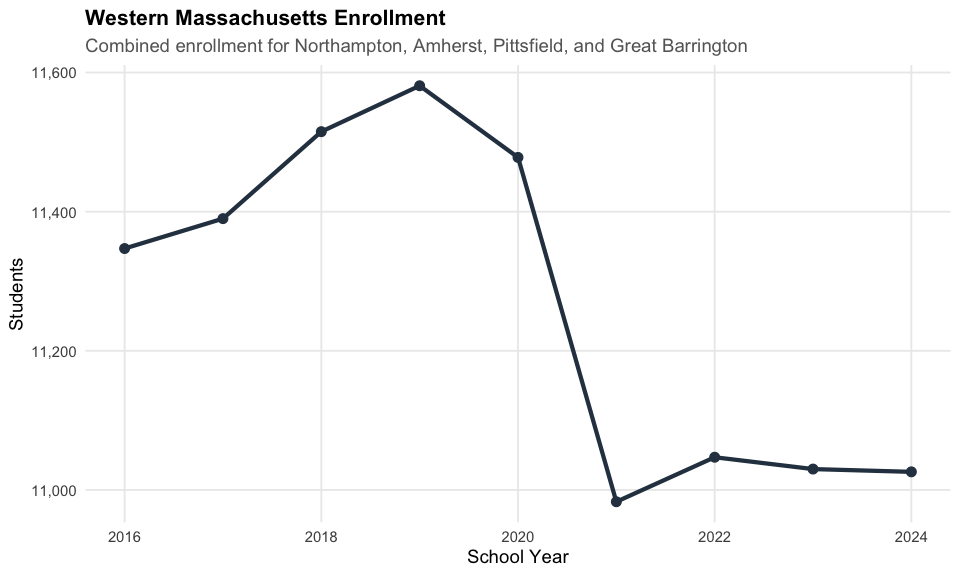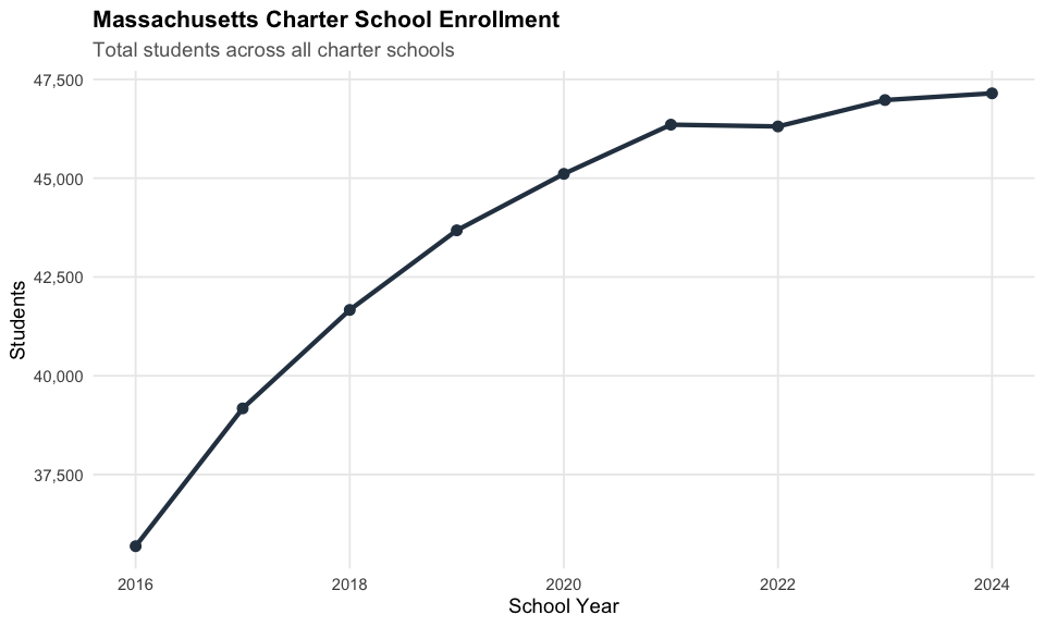 warning("2024 data unavailable from MA DOE API; using ", max_year, " as most recent year")