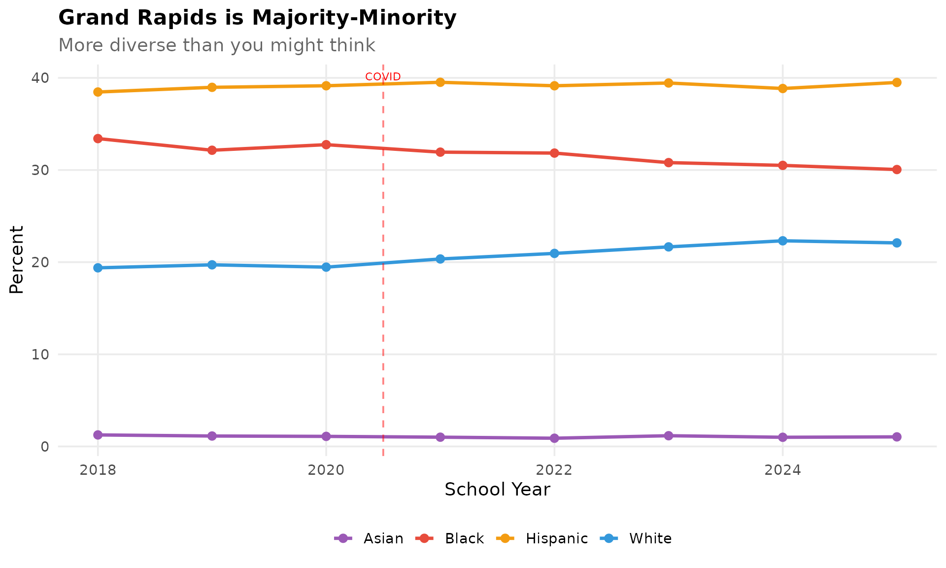 labs(title = "Grand Rapids is Majority-Minority",