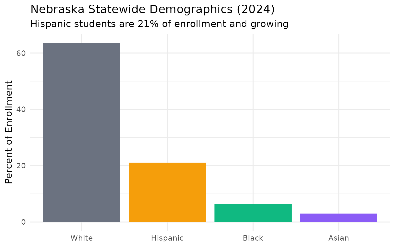 Nebraska’s demographic transformation: Hispanic students went from 32,000 to 77,000 in two decades.