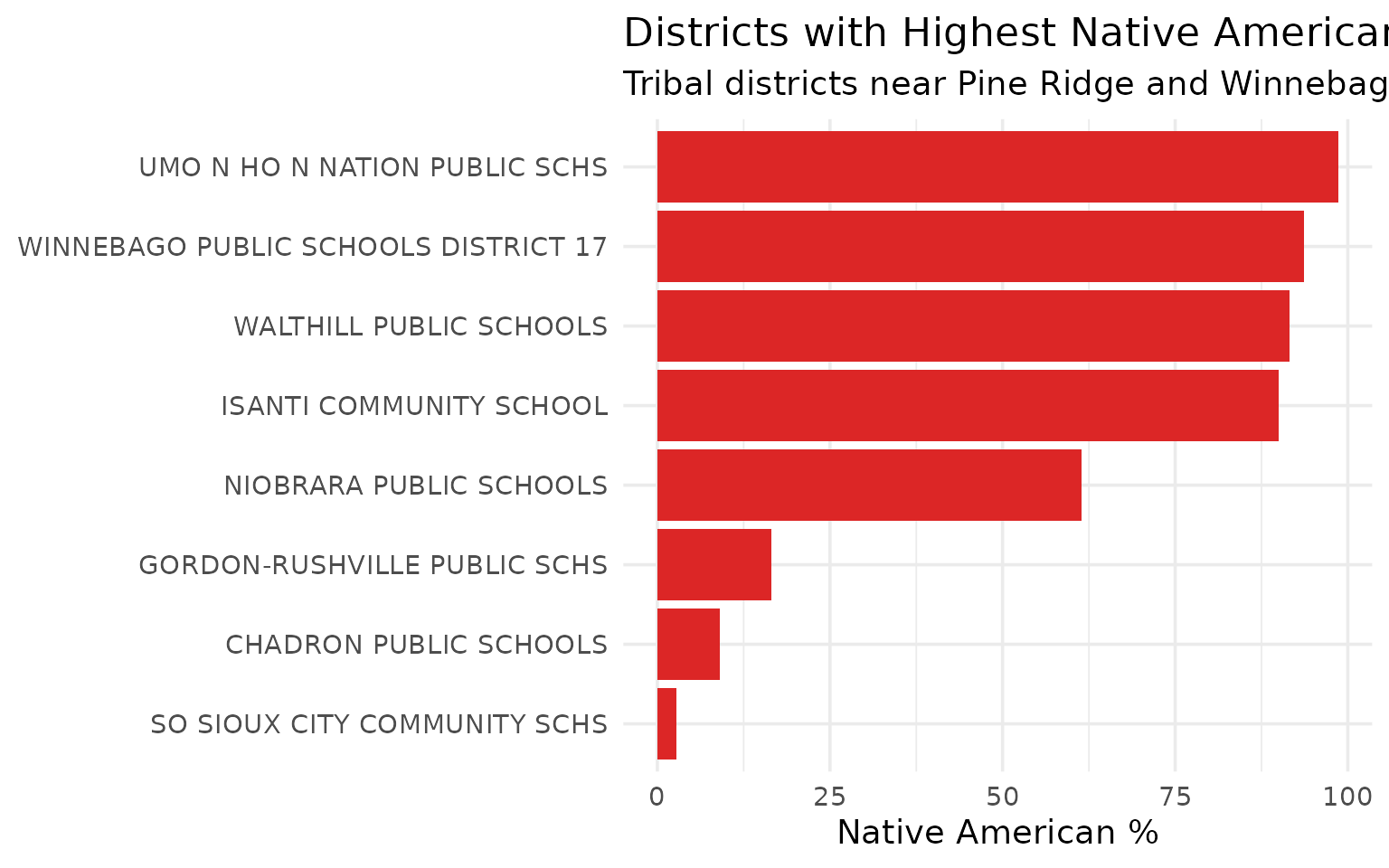 UMO N HO N NATION, WINNEBAGO, and WALTHILL serve predominantly Native American populations near Nebraska’s reservations.