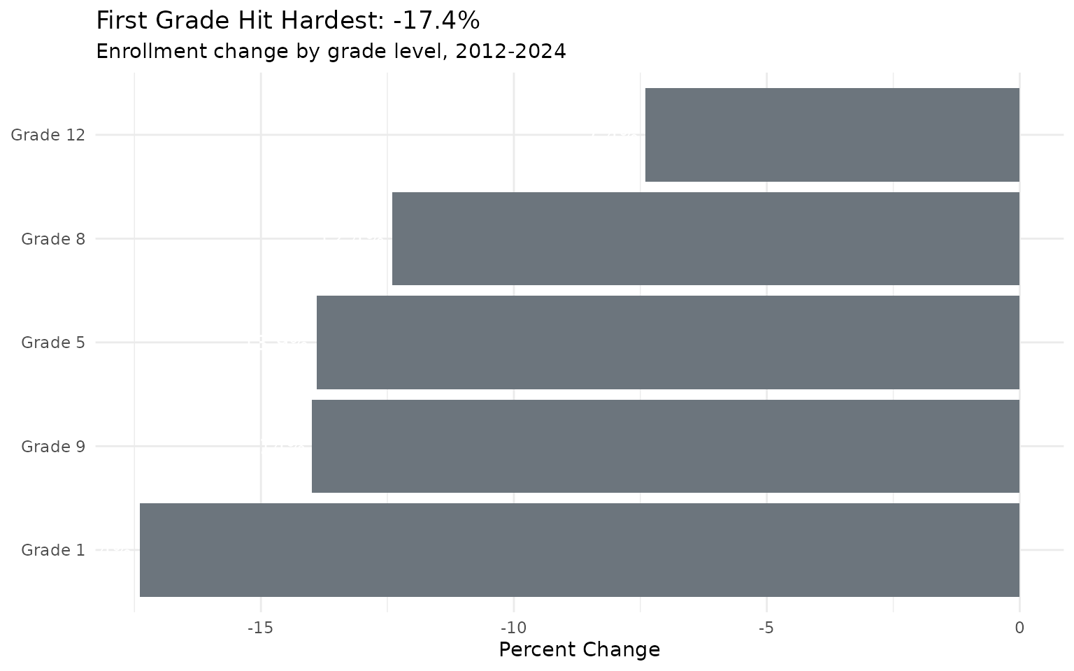 | Grade 1 decline | -33,643 students (-17.4%) |