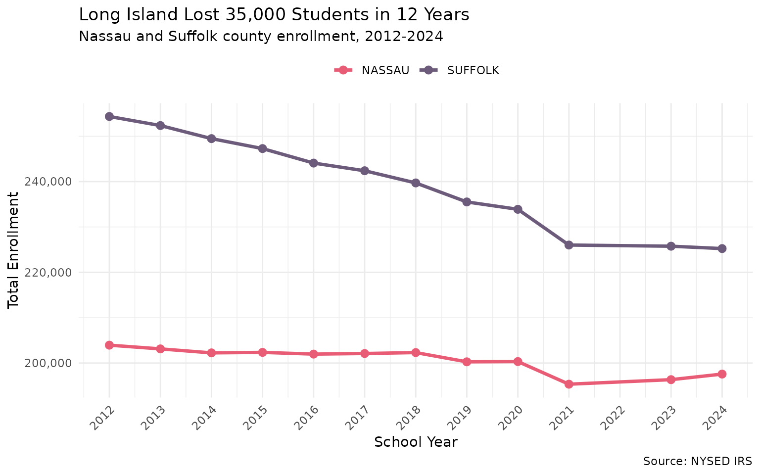 | Long Island loss | -35,493 students (Nassau + Suffolk) |