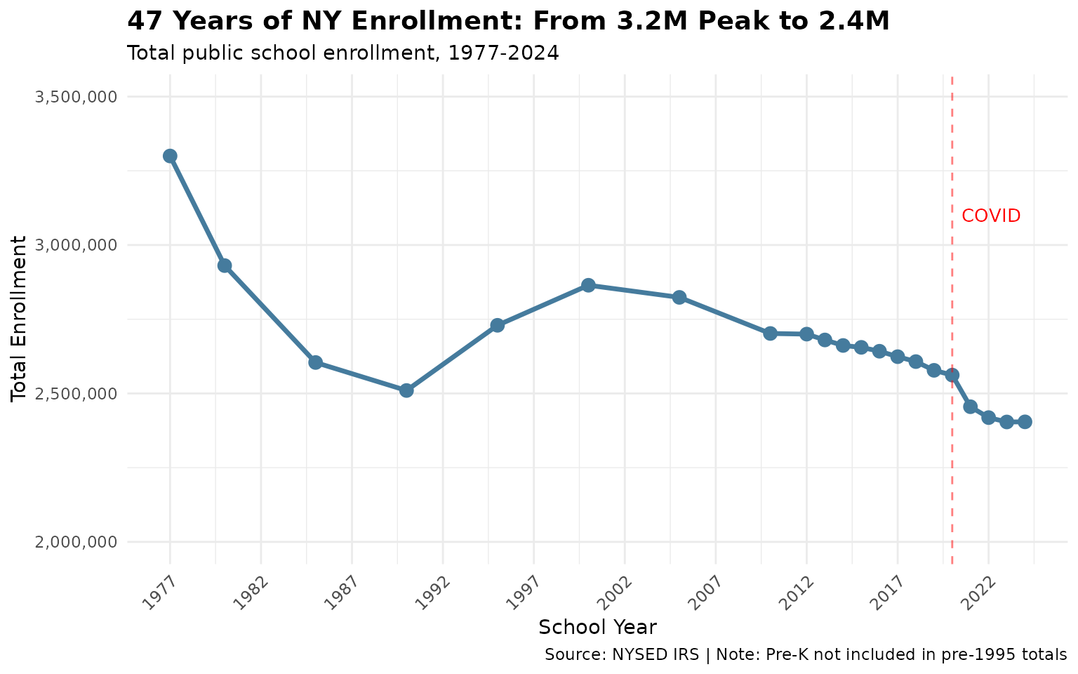 title = "47 Years of NY Enrollment: From 3.2M Peak to 2.4M",