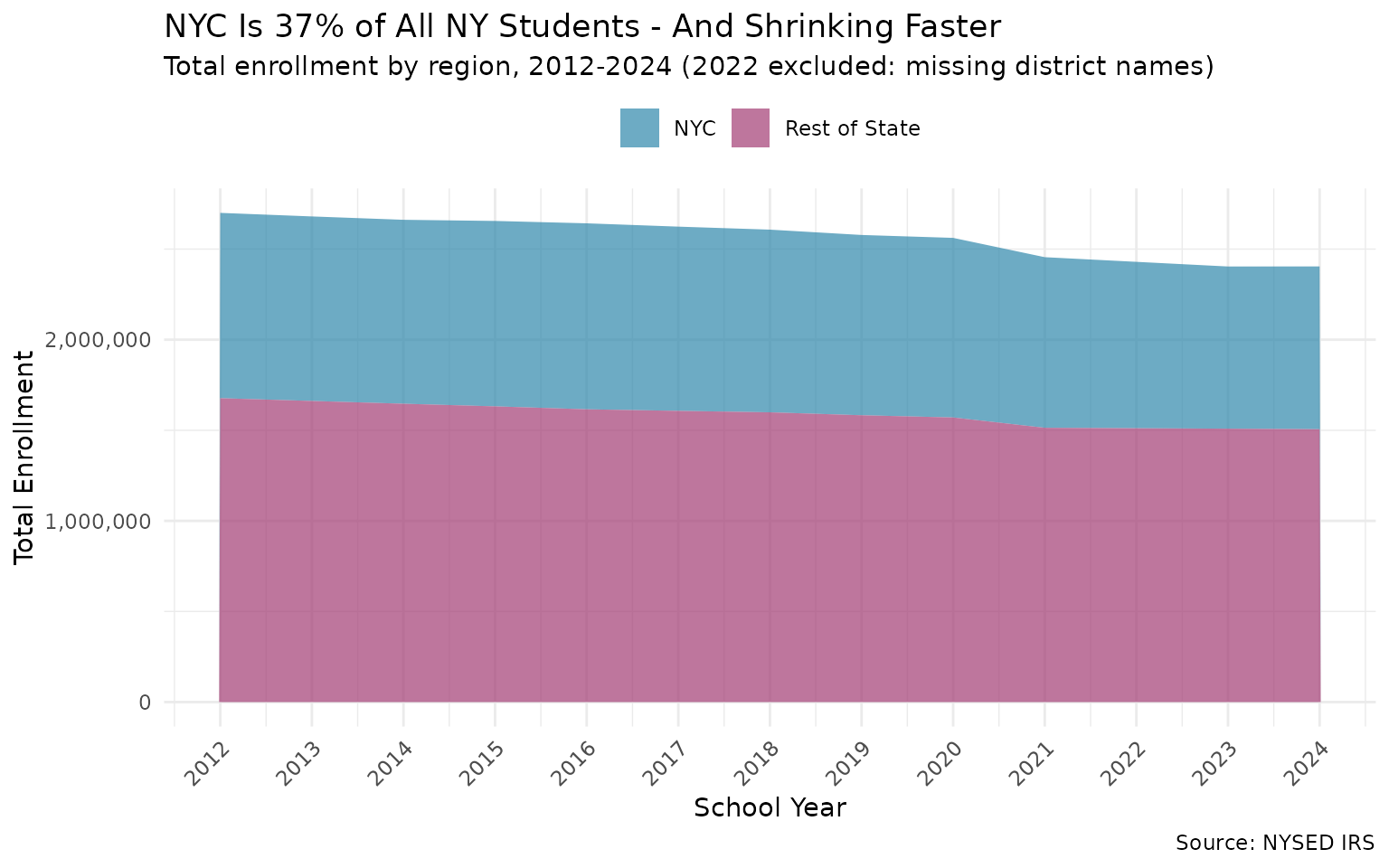 This vignette explores 13 years of enrollment data to surface the trends shaping New York’s educational landscape.