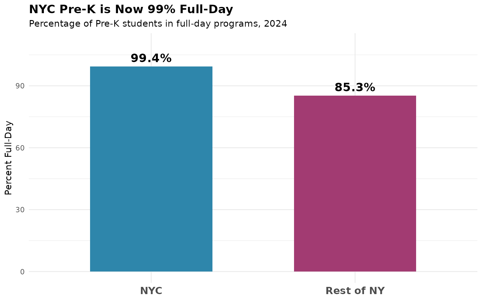 | NYC full-day Pre-K | 99% vs 85% rest of state |