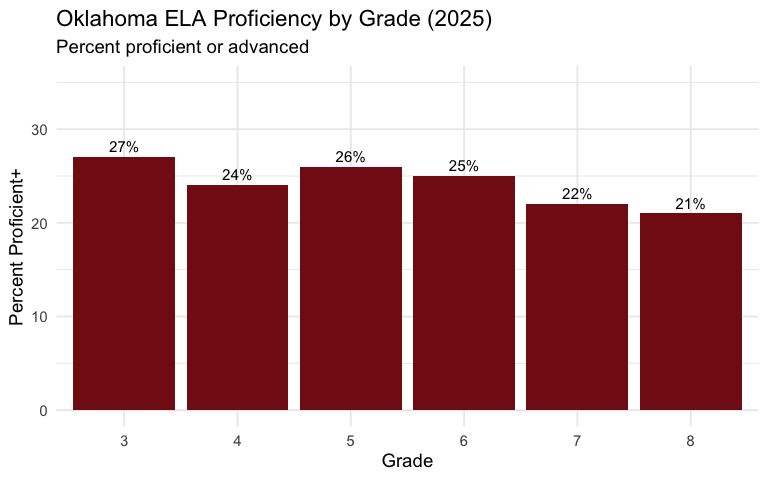title = "Oklahoma ELA Proficiency by Grade (2025)",