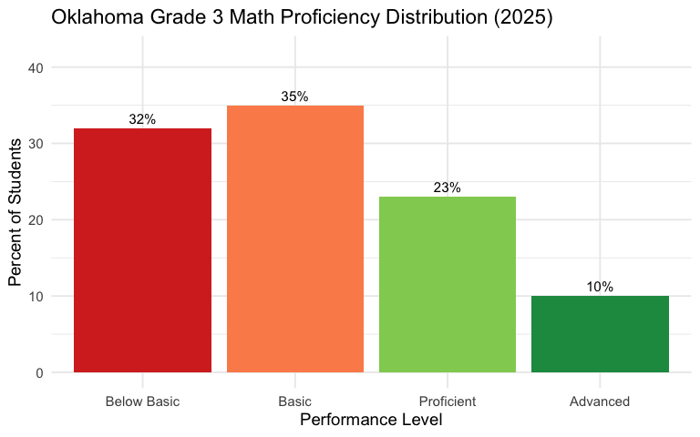 title = "Oklahoma Math Proficiency by Grade (2025)",