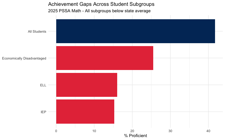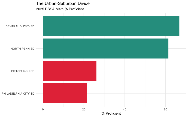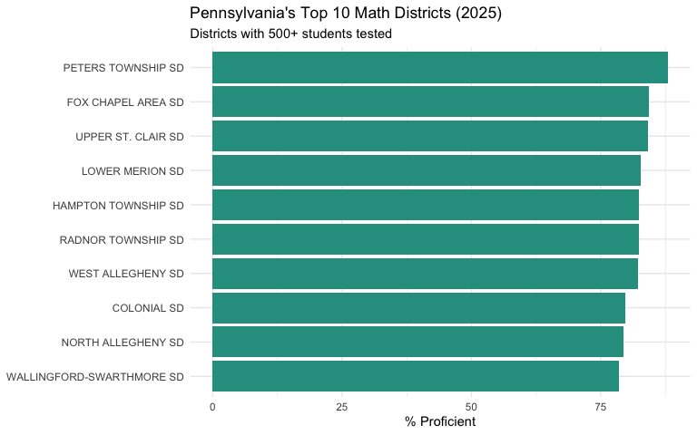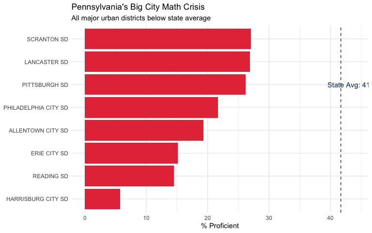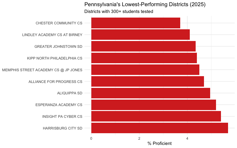 labs(title = "Pennsylvania's Lowest-Performing Districts (2025)",