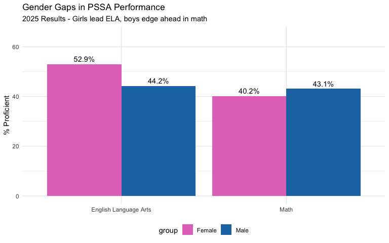 subtitle = "2025 Results - Girls lead ELA, boys edge ahead in math",
