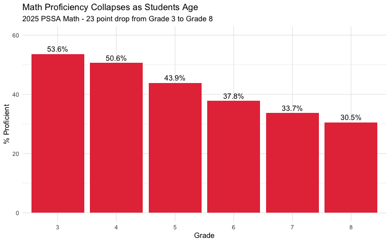 subtitle = "2025 PSSA Math - 23 point drop from Grade 3 to Grade 8",