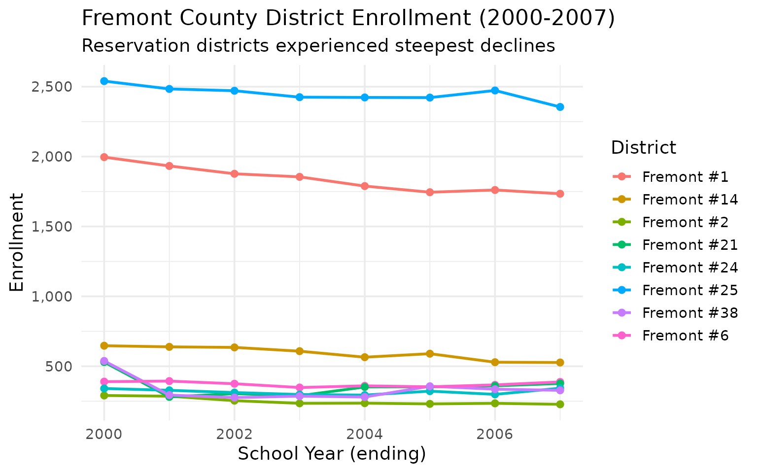 - Reservation decline: Fremont County lost 14% of students, with some districts losing nearly 40%